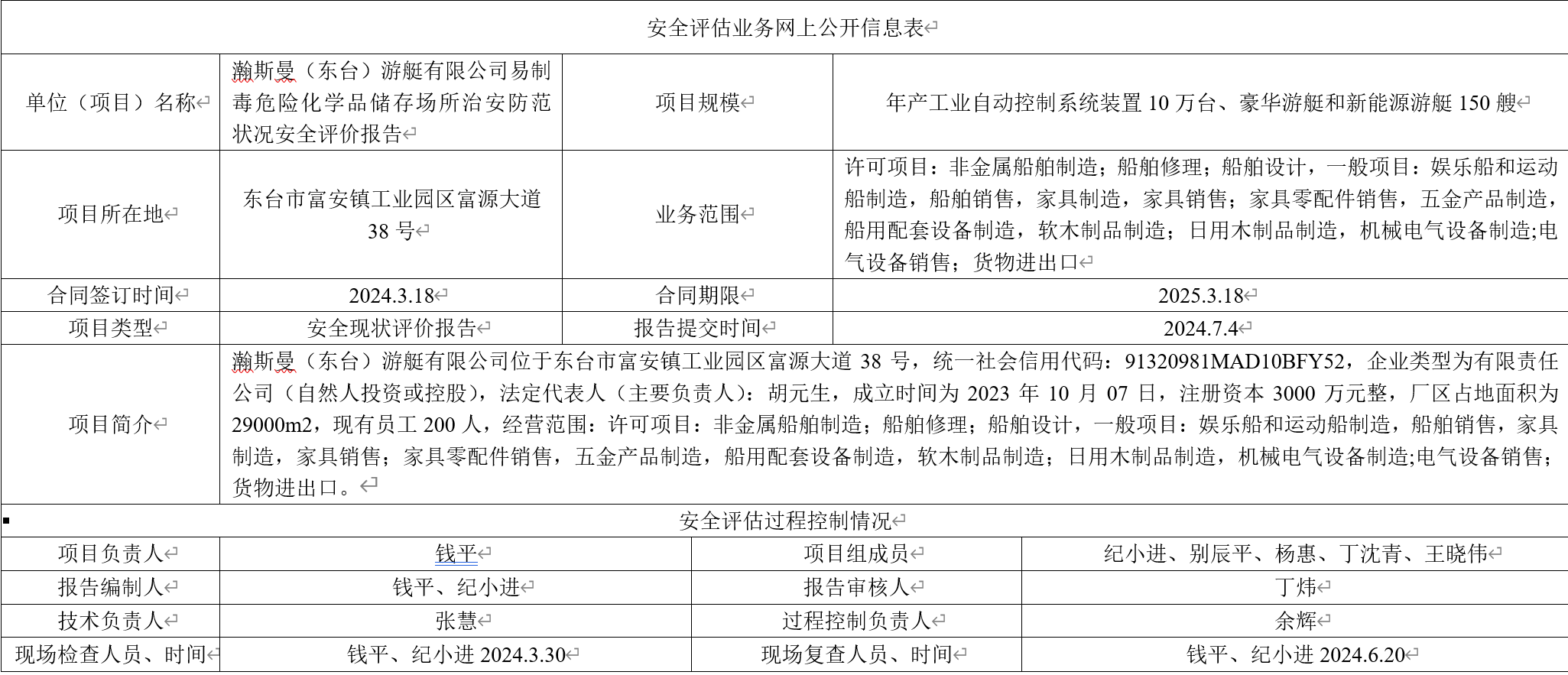 瀚斯曼(东台)游艇有限公司易制毒危险化学品储存场所治安防范状况安全评价报告