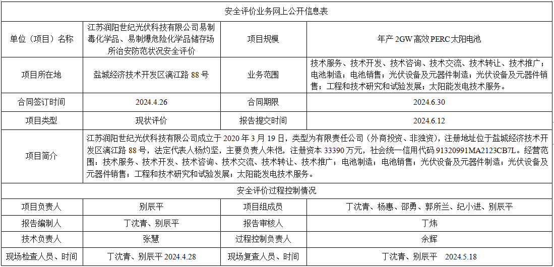 江苏润阳世纪光伏科技有限公司易制毒化学品、易制爆危险化学品储存场所治安防范状况安全评价