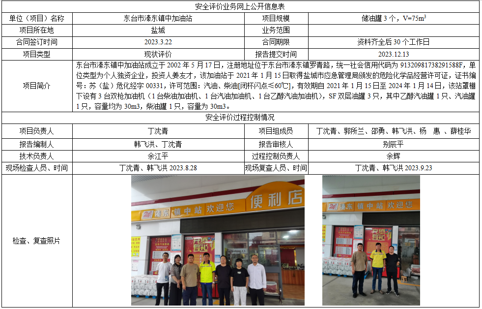 下一篇:中国石化销售股份有限公司江苏盐城东台东蹲加油站换证评价