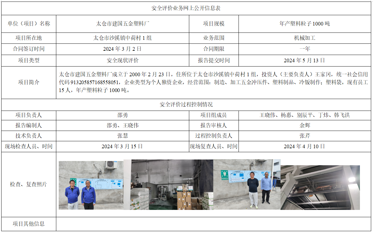 太仓市建国五金塑料厂安全现状评价报告