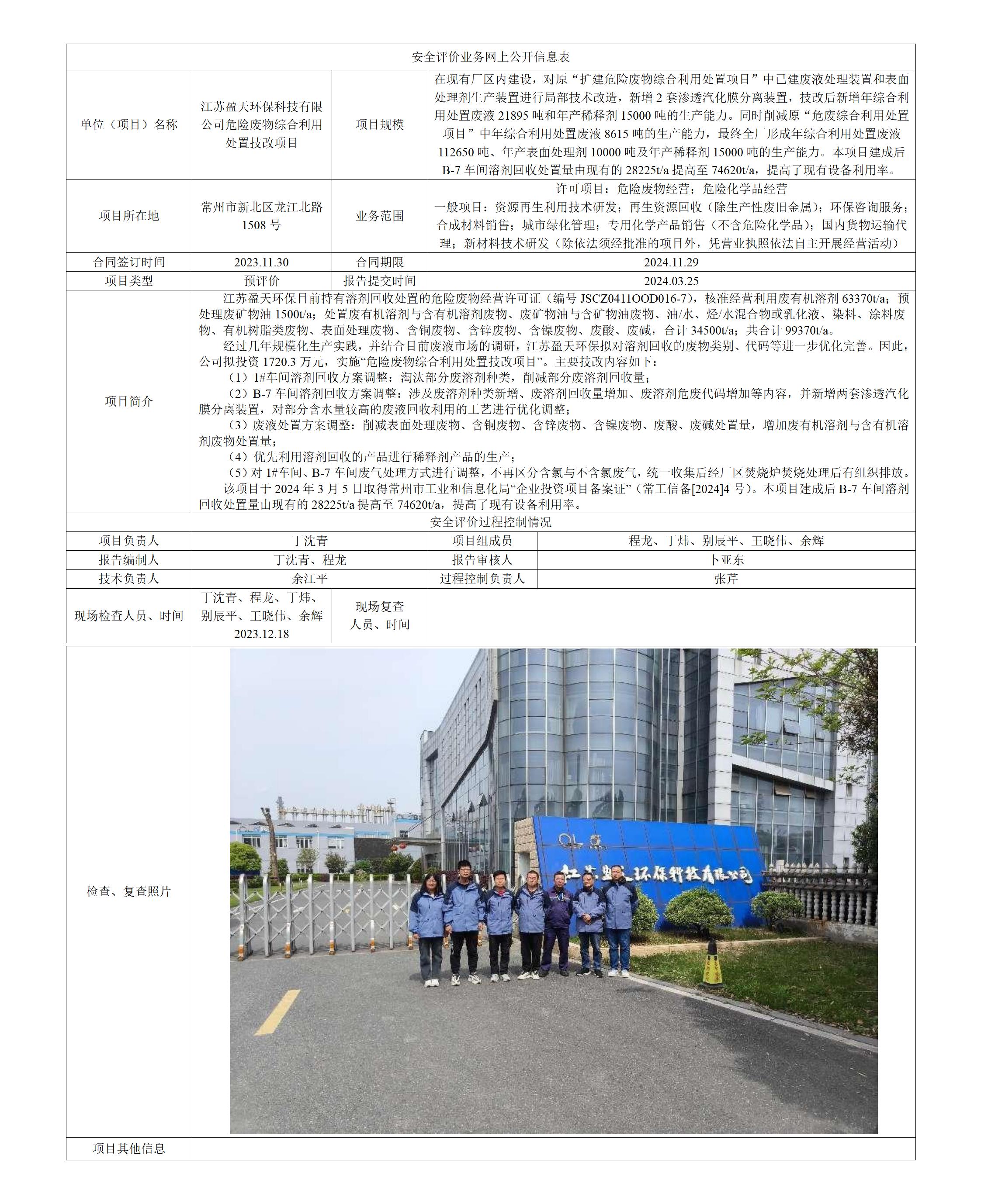 江苏盈天环保科技有限公司危险废物综合利用处置技改项目