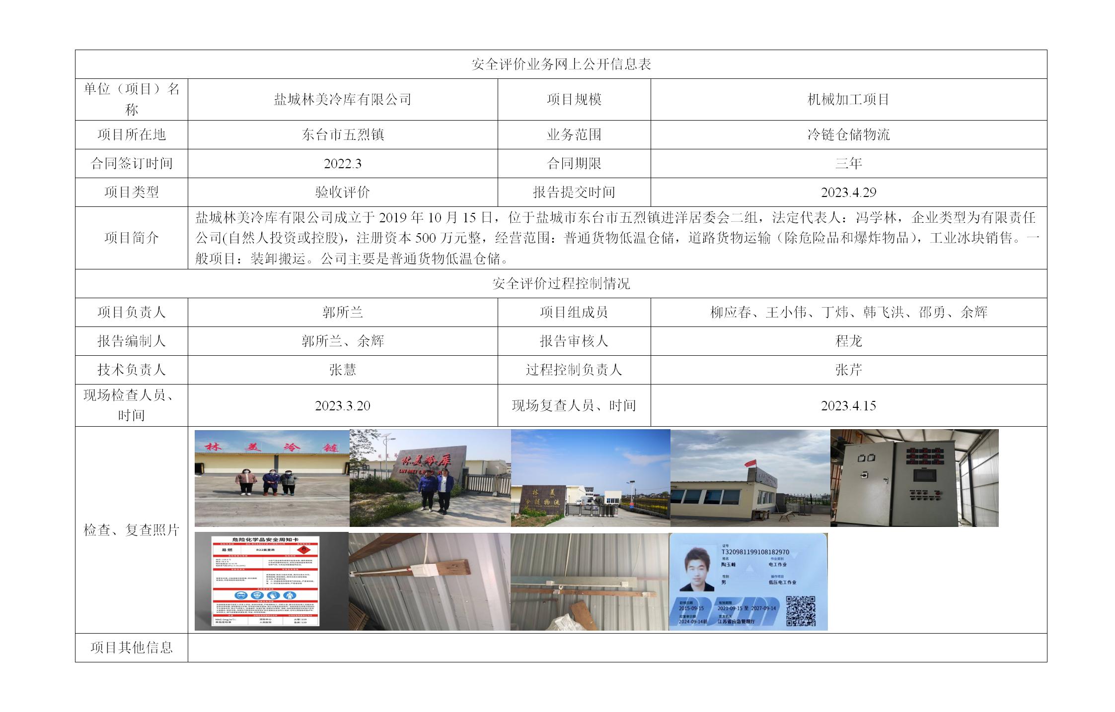 盐城林美冷库有限公司冷链仓储物流项目安全设施竣工验收评价报告