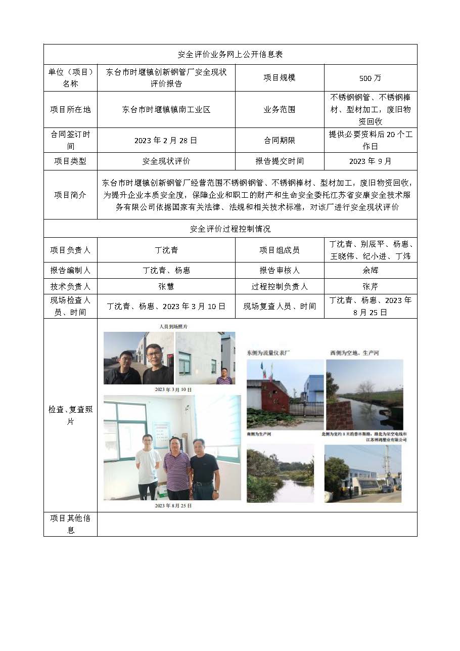 东台市时堰镇创新钢管厂安全现状评价报告