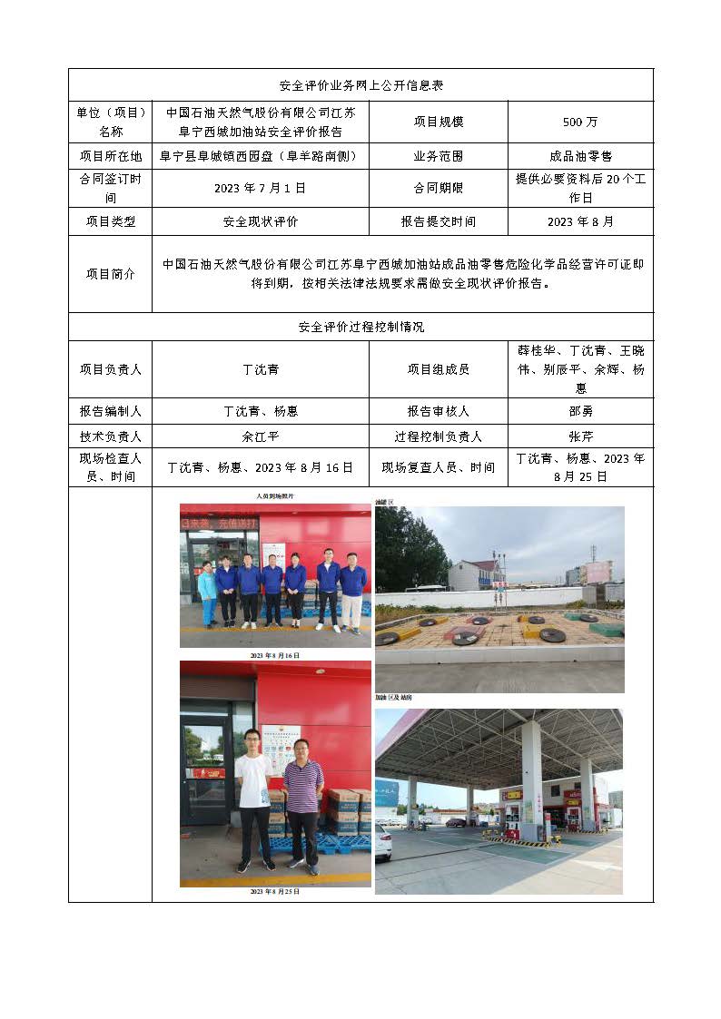 中国石油天然气股份有限公司江苏阜宁西城加油站安全评价报告