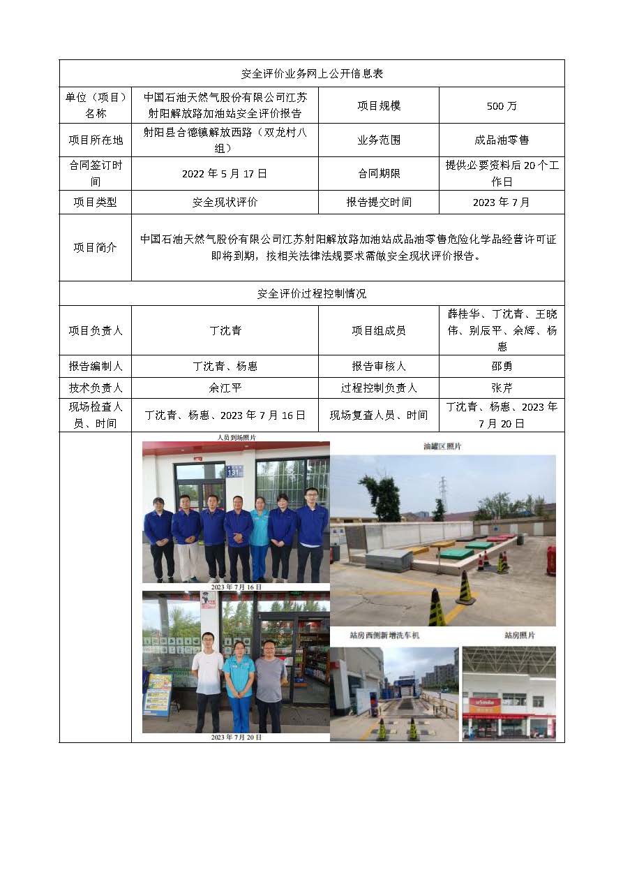 中国石油天然气股份有限公司江苏射阳解放路加油站安全评价报告