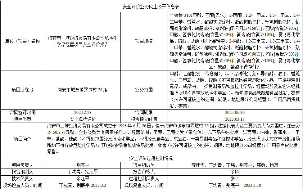 海安市三塘经济贸易有限公司危险化学品经营项目安全评价报告
