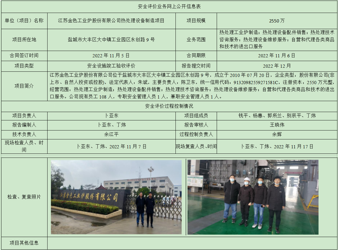江苏金色工业炉股份有限公司热处理设备制造项目