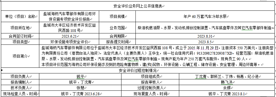盐城海纳汽车零部件有限公司环保设施专项安全评价报告