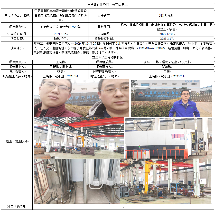 江苏富川机电有限公司电线电缆成套设备和电线电缆成套设备组装技改扩能项目