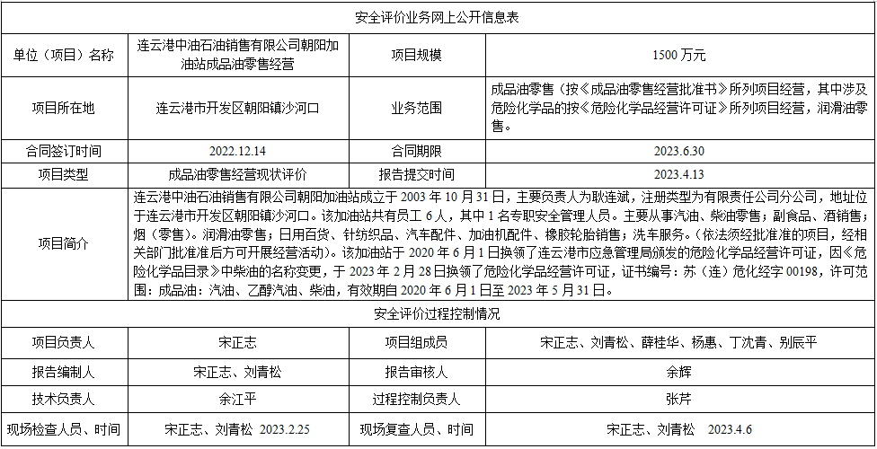 连云港中油石油销售有限公司朝阳加油站成品油零售经营