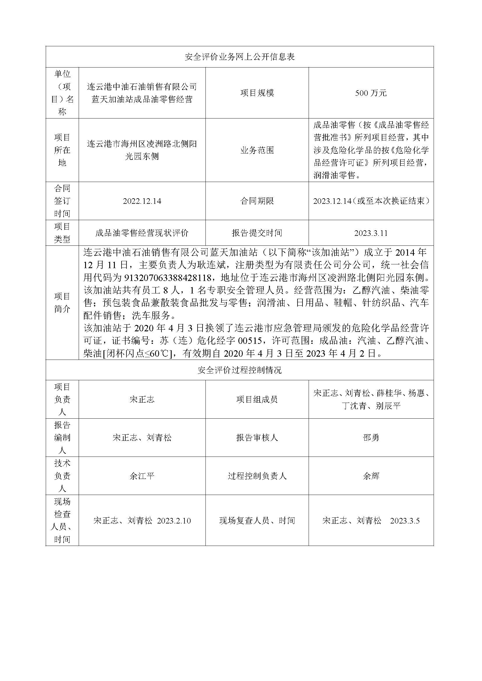 连云港中油石油销售有限公司蓝天加油站成品油零售经营