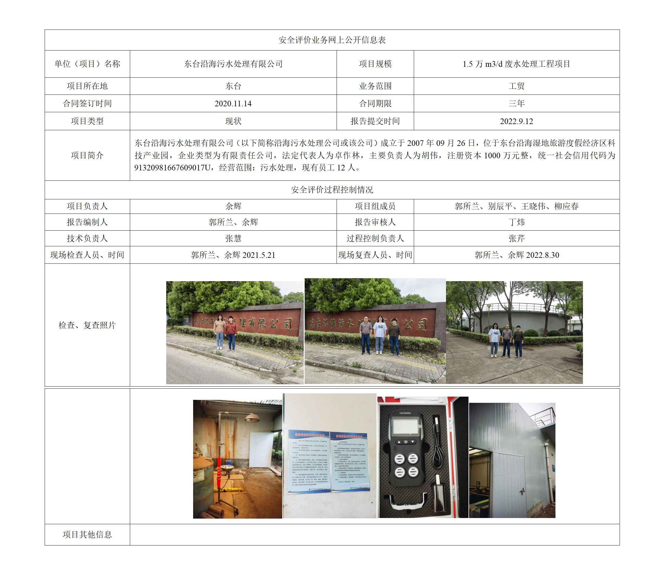 东台沿海污水处理有限公司1.5万m3/d废水处理工程项目安全现状评价报告