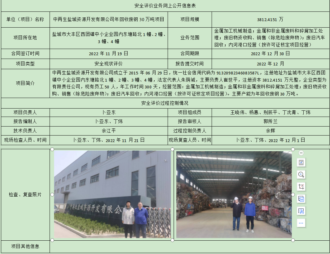 中再生盐城资源开发有限公司年回收废钢30万吨项目