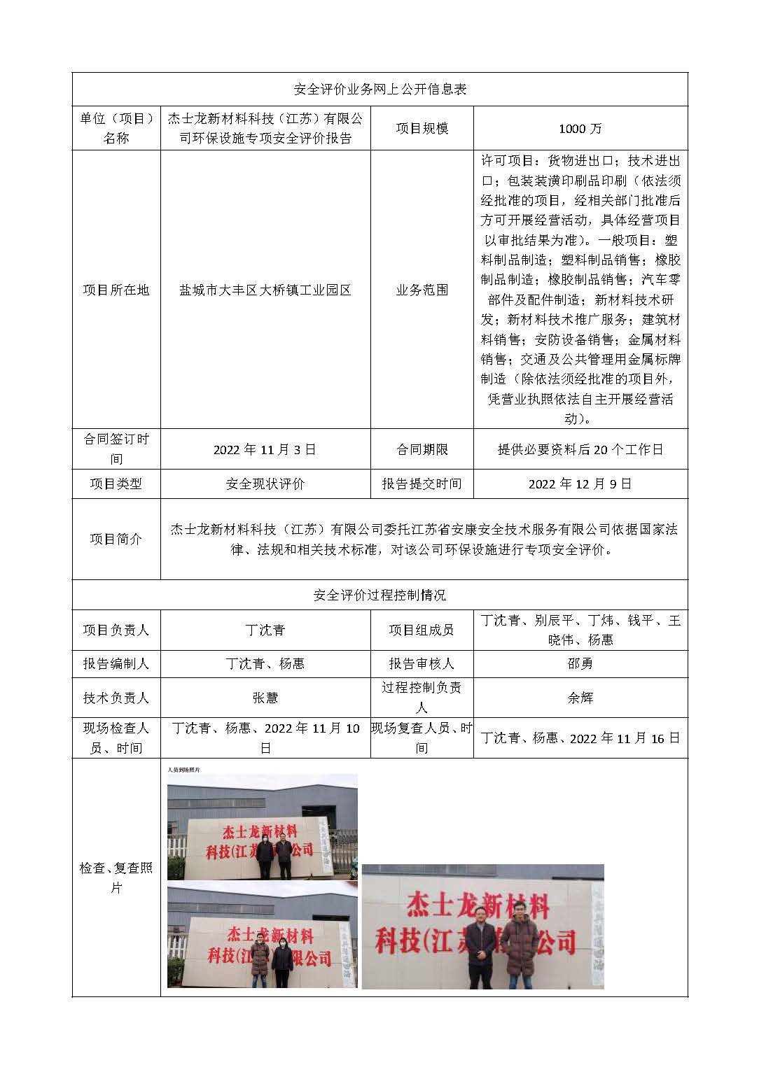 杰士龙新材料科技(江苏)有限公司环保设施专项安全评价报告
