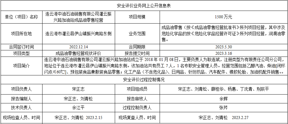 连云港中油石油销售有限公司灌云振兴路加油站成品油零售经营
