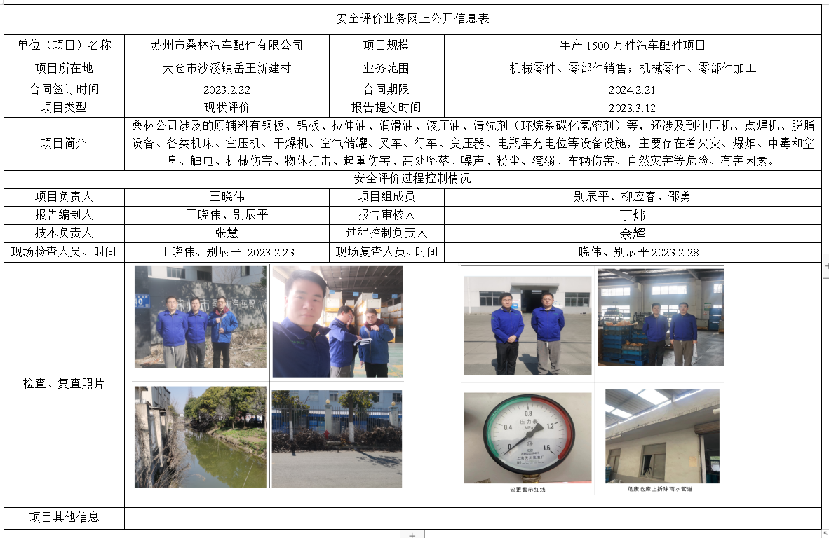 苏州市桑林汽车配件有限公司年产1500万件汽车配件项目