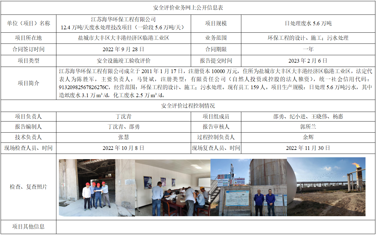 江苏海华环保工程有限公司12.4万吨/天废水处理技改项目(一阶段5.6万吨/天)安全设施竣工验收评价报告