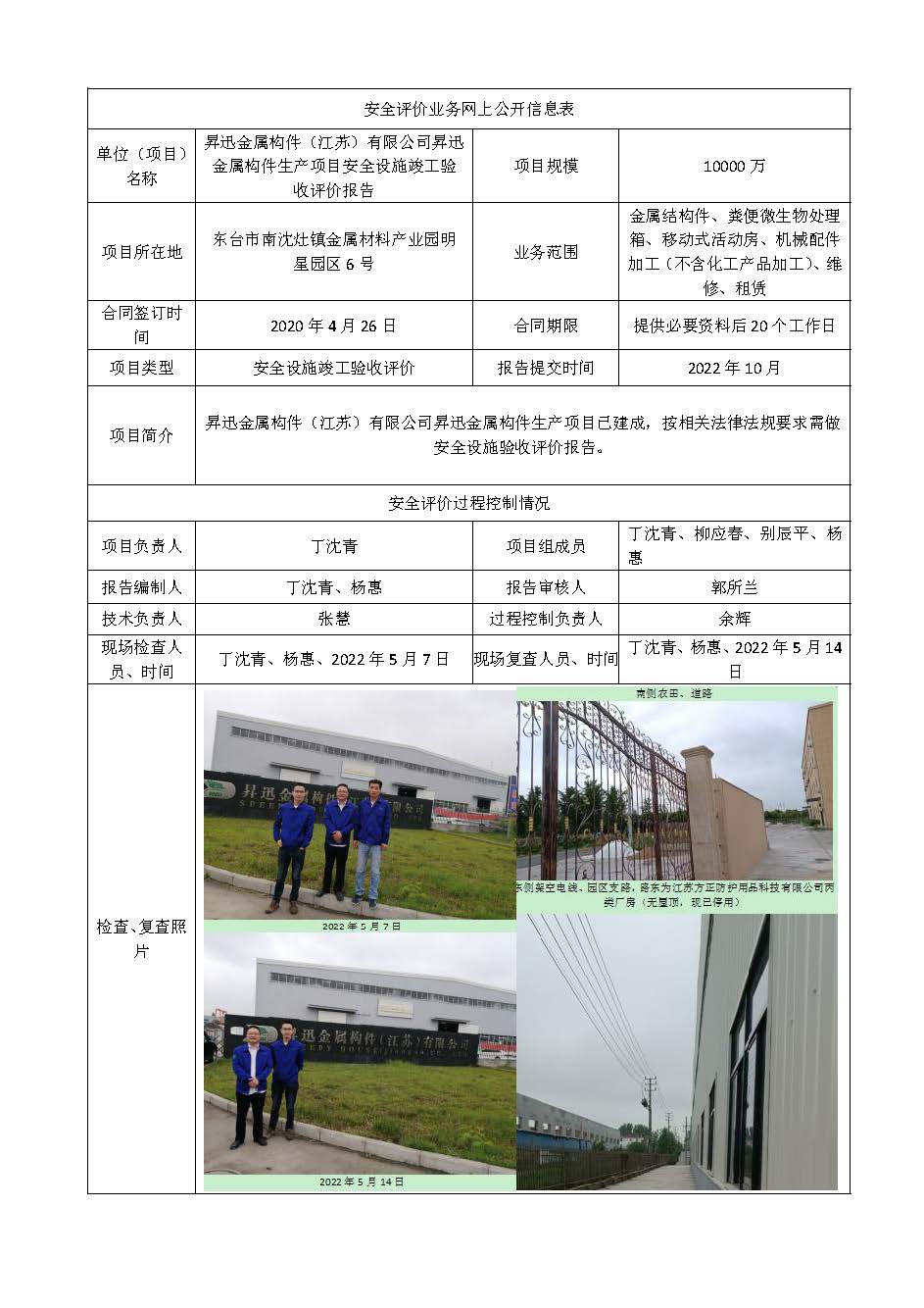 昇迅金属构件(江苏)有限公司昇迅金属构件生产项目安全设施竣工验收评价报告