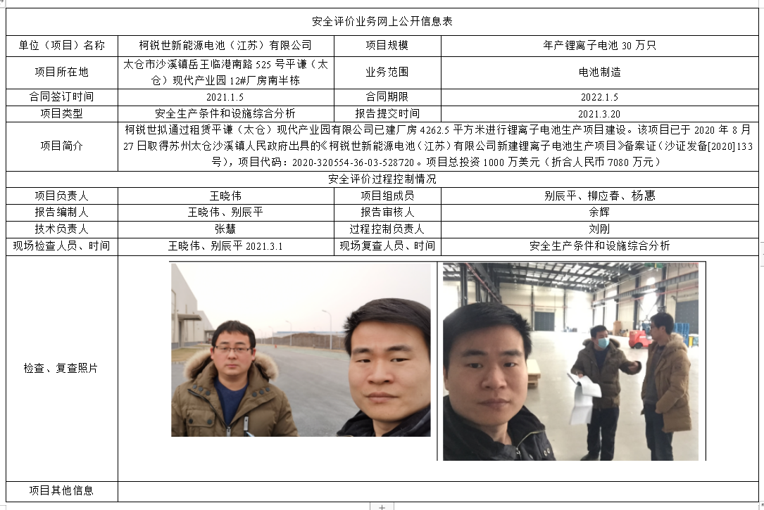柯锐世新能源电池(江苏)有限公司新建锂离子电池生产项目