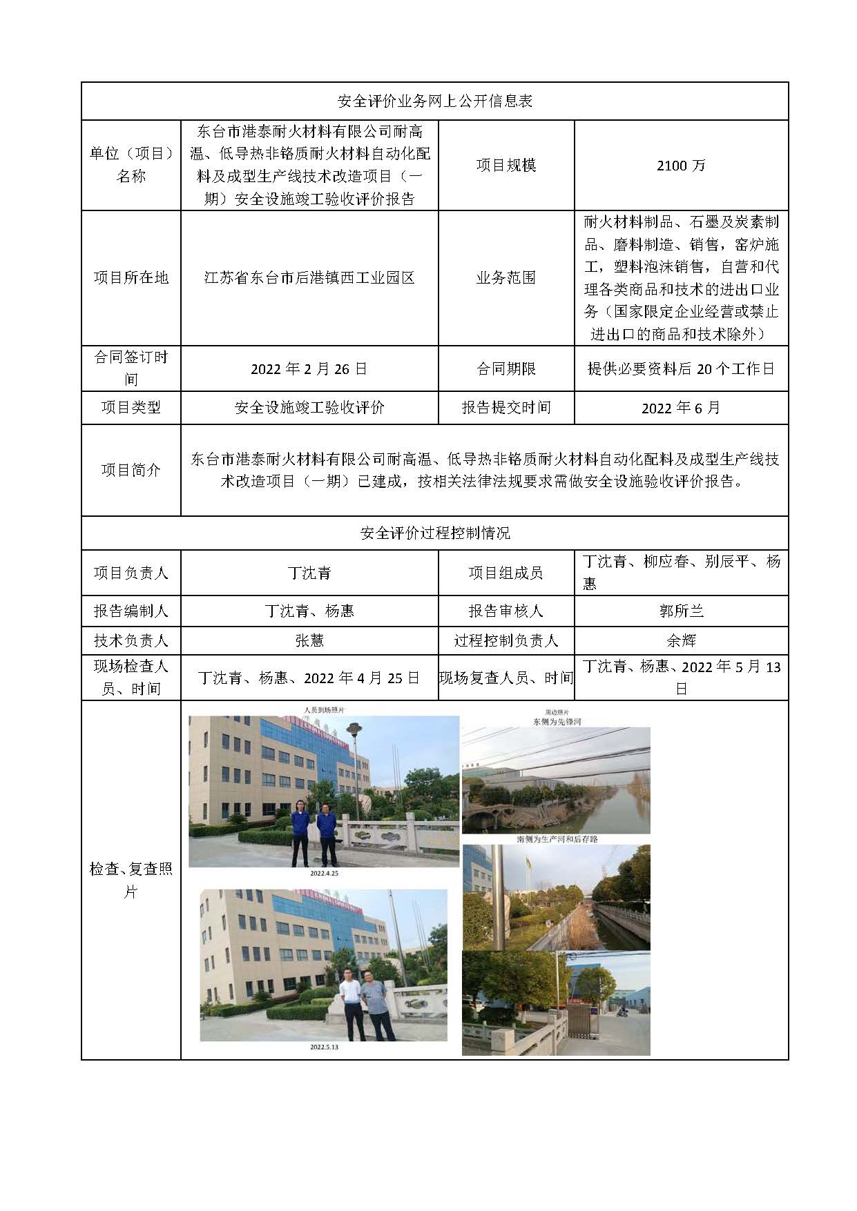 东台市港泰耐火材料有限公司耐高温、低导热非铬质耐火材料自动化配料及成型生产线技术改造项目(一期)安全设施竣工验收评价报告