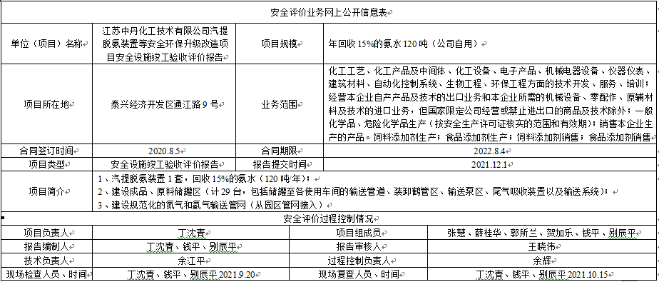 江苏中丹化工技术有限公司汽提脱氨装置等安全环保升级改造项目安全设施竣工验收评价报告