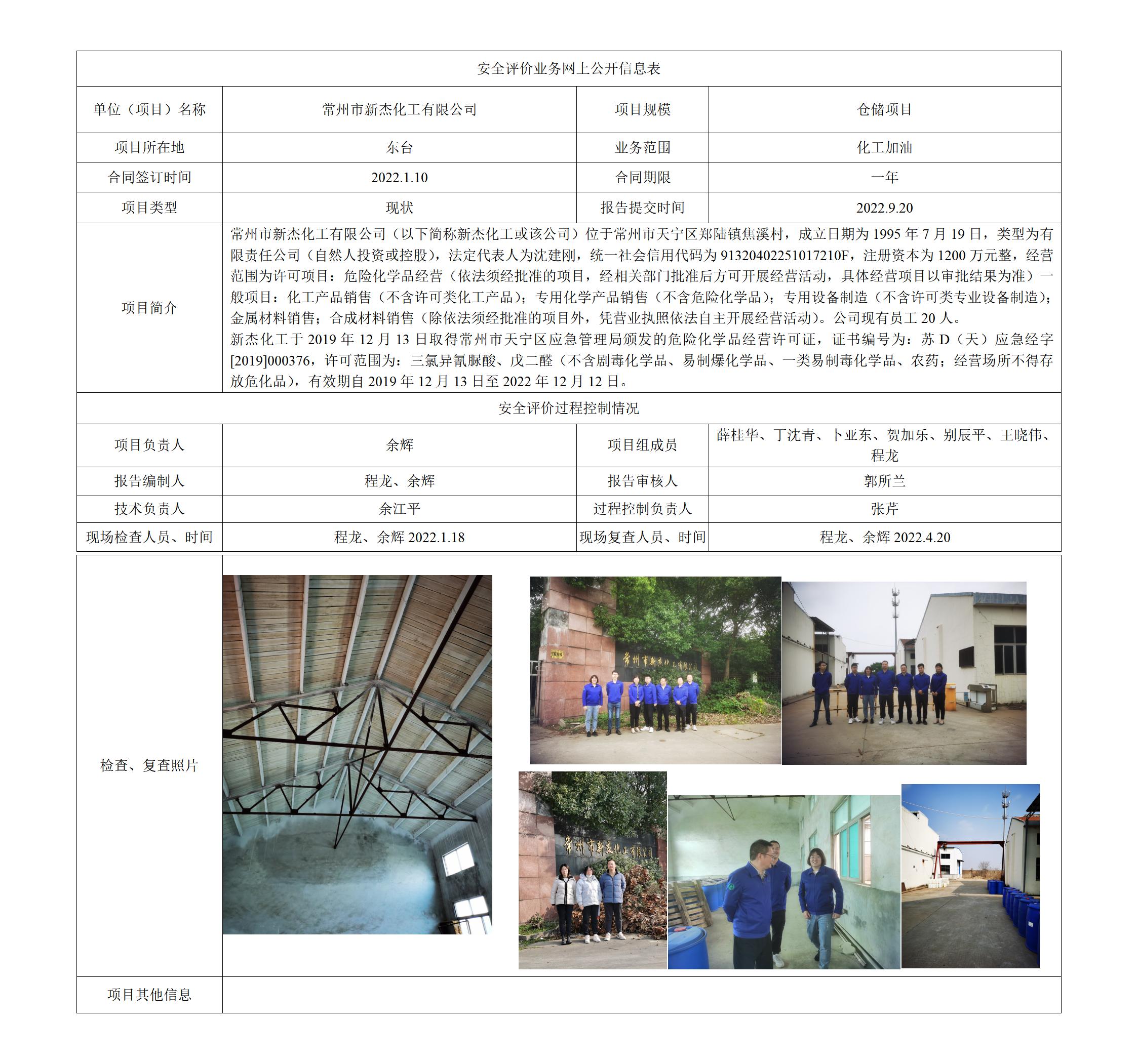 常州市新杰化工有限公司 仓储经营项目 安全现状评价报告
