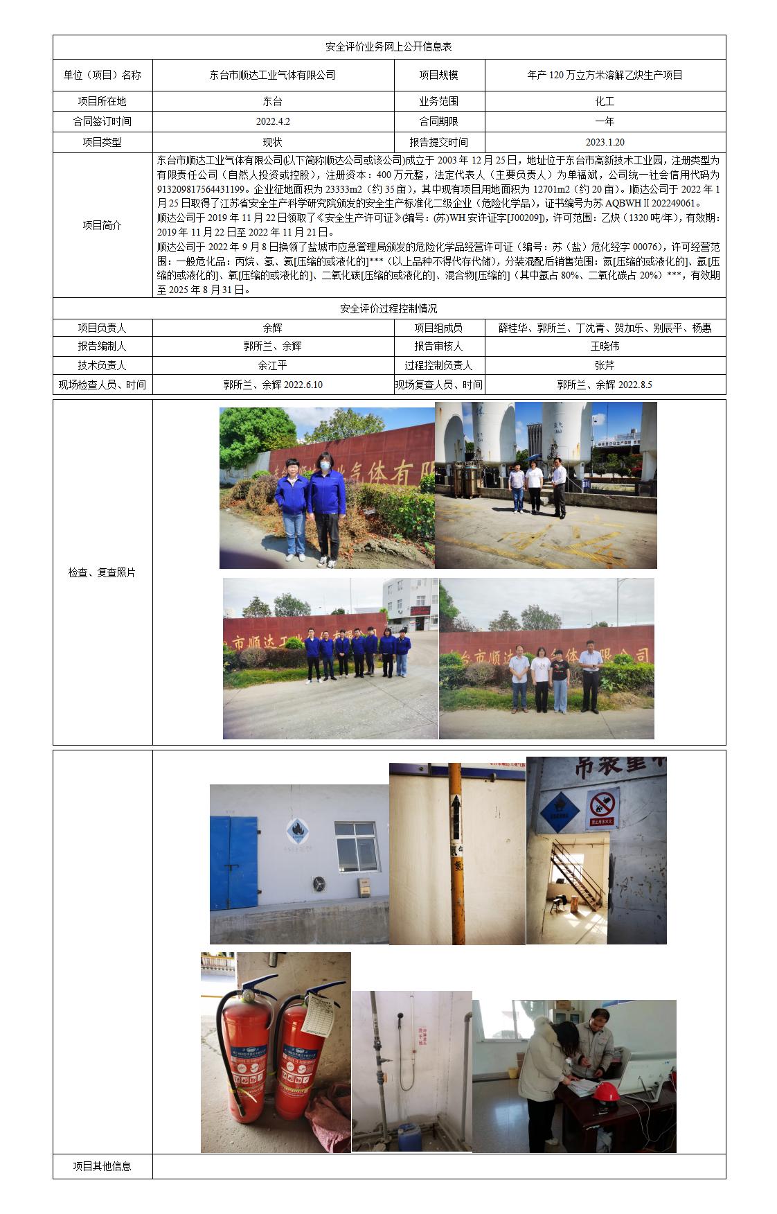 东台市顺达工业气体有限公司 年产120万立方米溶解乙炔生产项目 安全现状评价