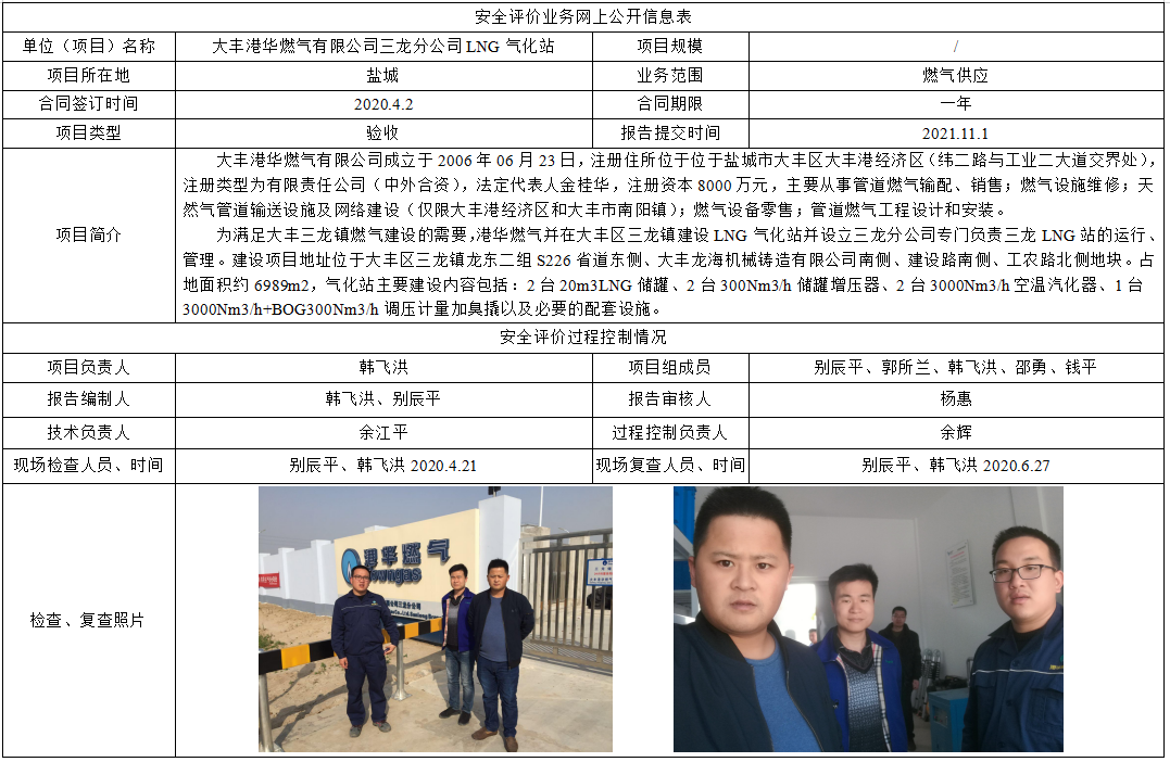 大丰港华燃气有限公司大丰三龙镇LNG气化站工程项目