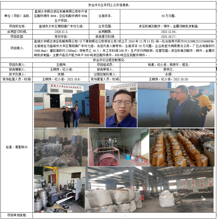 盐城大丰顺达液压机械有限公司年产液压配件铸件800t、空压机配件铸件900t生产项目现状评估报告