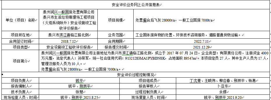 泰州润兴一般固废处置有限公司泰兴市生活垃圾填埋场工程项目(火炬系统除外)安全设施竣工验收评价报告