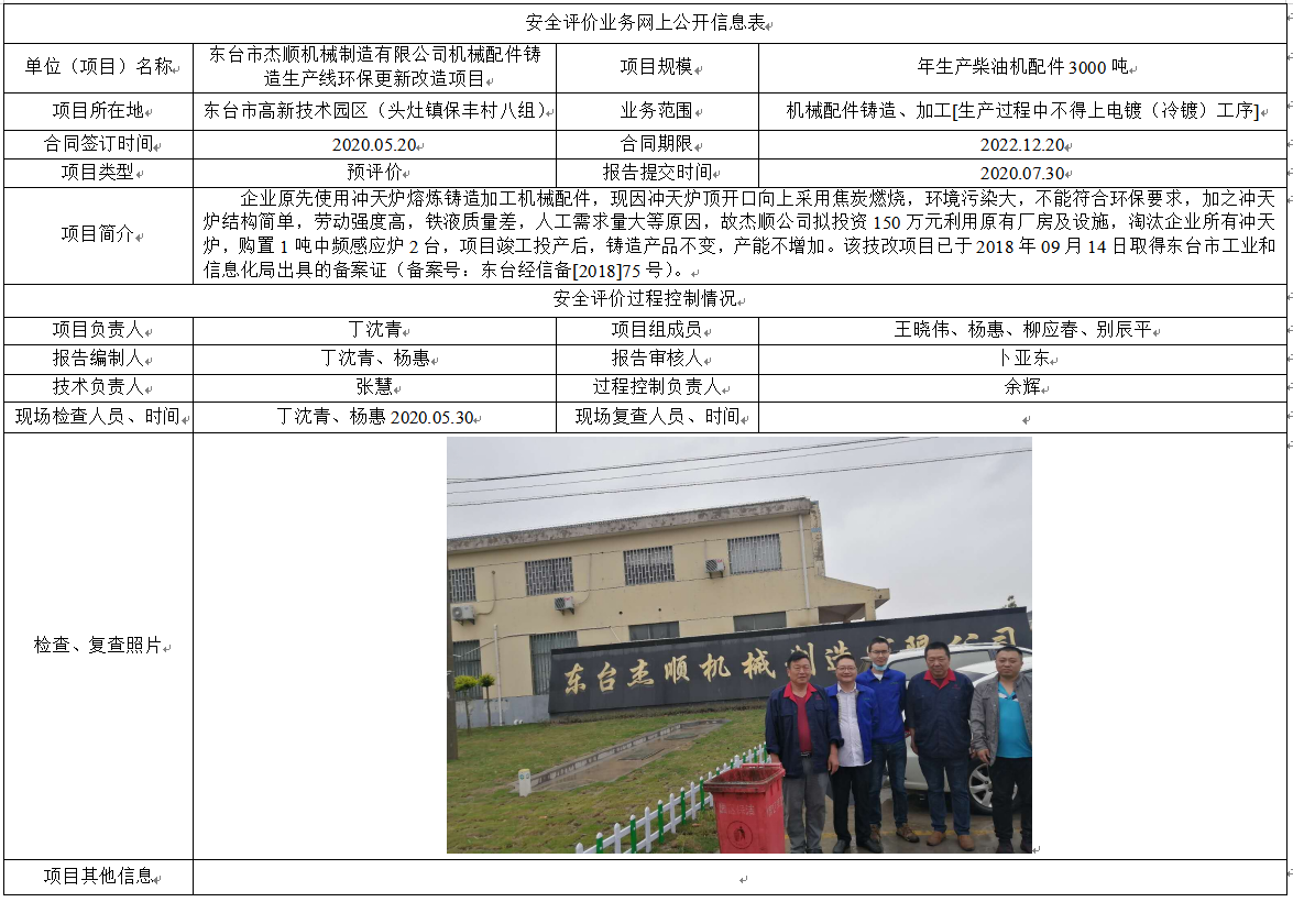 东台市杰顺机械制造有限公司机械配件铸造生产线环保更新改造项目预评价