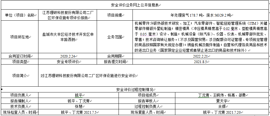 江苏理研科技股份有限公司二厂区环保设施专项评价报告
