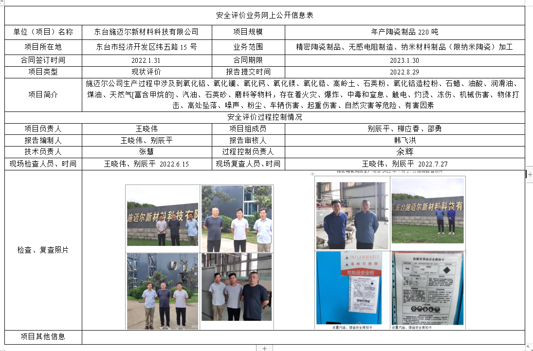 东台施迈尔新材料科技有限公司精密陶瓷制品生产项目