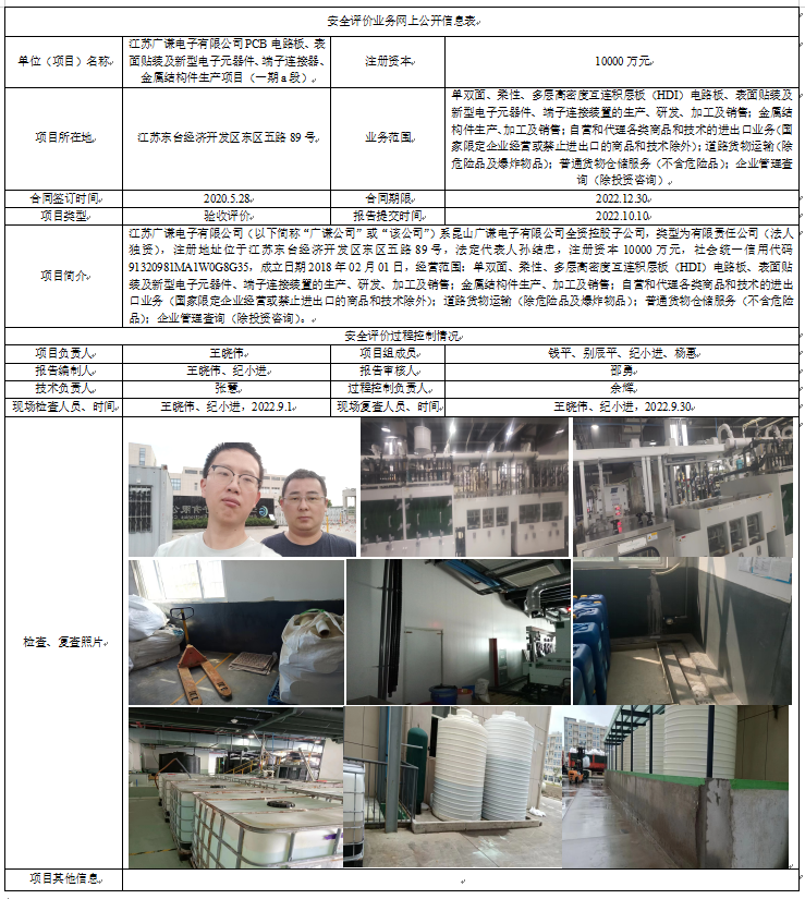 江苏广谦电子有限公司PCB电路板、表面贴装及新型电子元器件、端子连接器、金属结构件生产项目(一期a段)验收评价