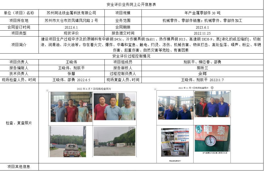 苏州阿法铁金属科技有限公司新建金属零部件项目