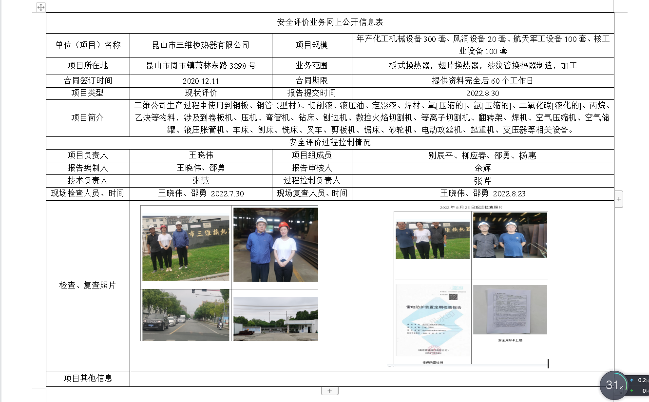 昆山市三维换热器有限公司安全现状评价