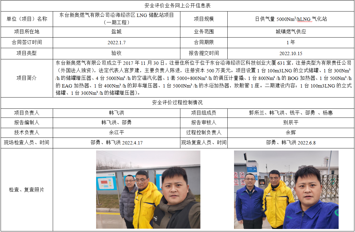 东台新奥燃气有限公司沿海经济区LNG储配站项目 (一期工程)