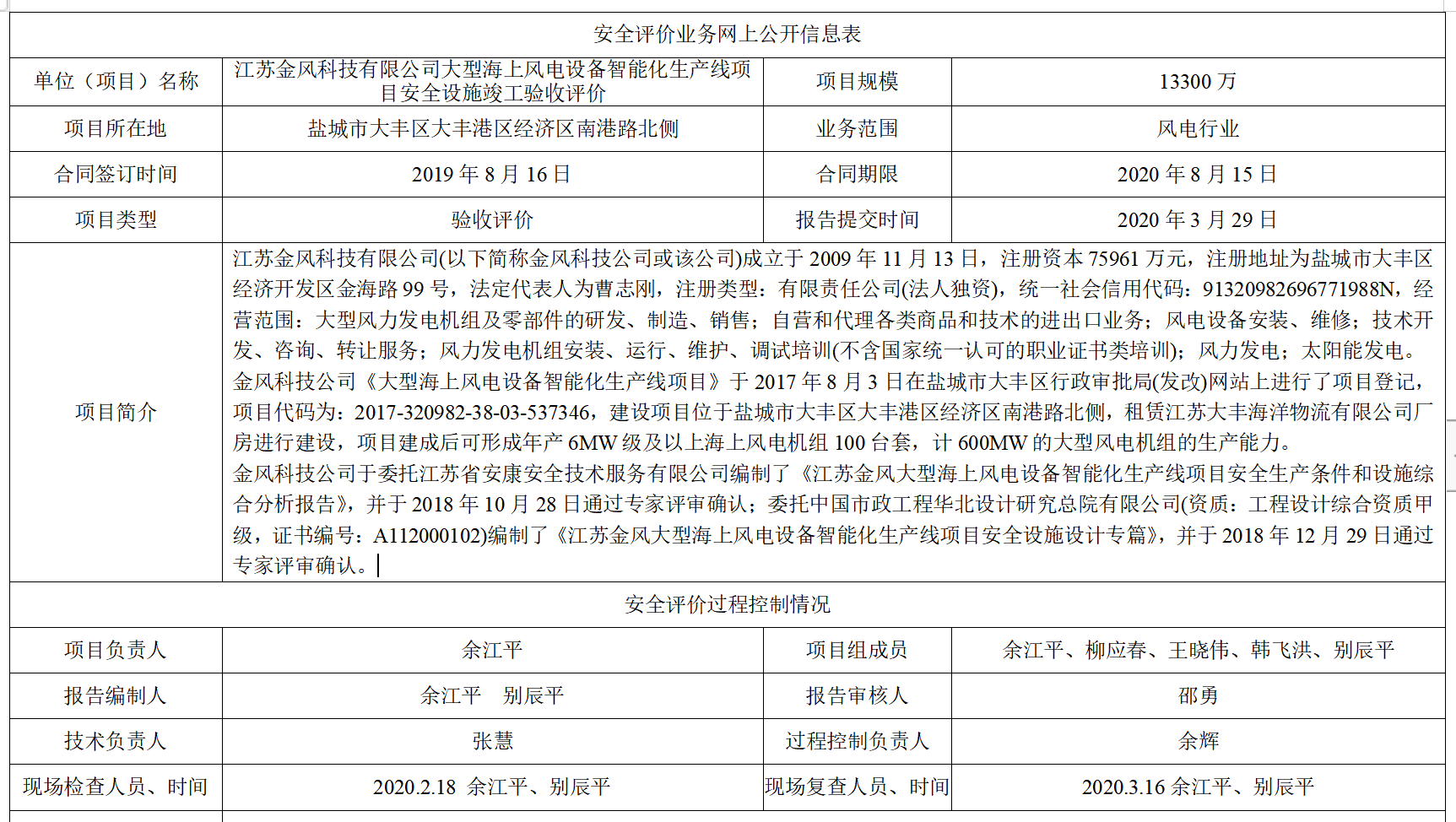 江苏金风科技有限公司大型海上风电设备智能化生产线项目安全设施竣工验收评价