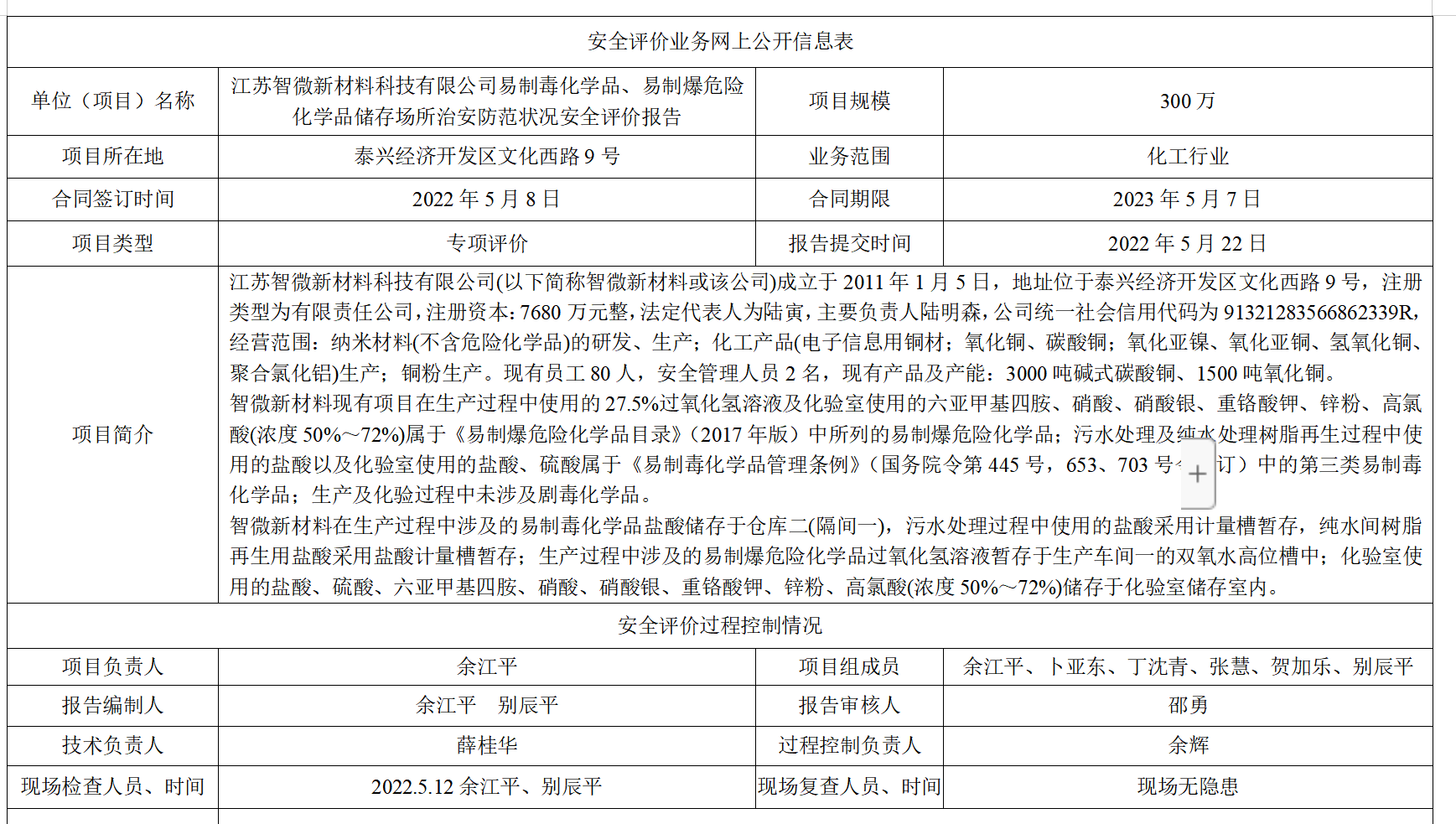 江苏智微新材料科技有限公司易制毒化学品、易制爆危险化学品储存场所治安防范状况安全评价报告