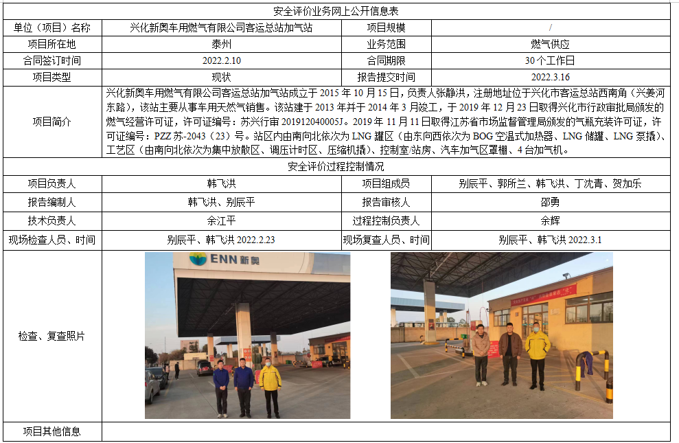 兴化新奥车用燃气有限公司客运总站加气站安全现状评价