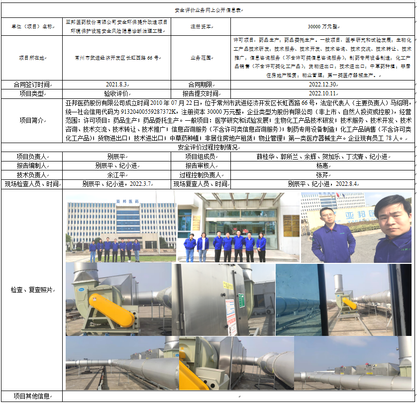 亚邦医药股份有限公司安全环保提升改造项环境保护设施安全风险隐患诊断治理工程目