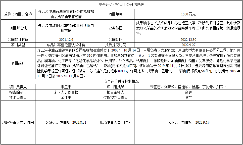 连云港中油石油销售有限公司福临加油站成品油零售经营