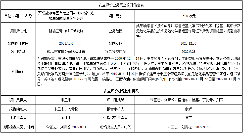 万联能源集团有限公司赣榆环城北路加油站成品油零售经营