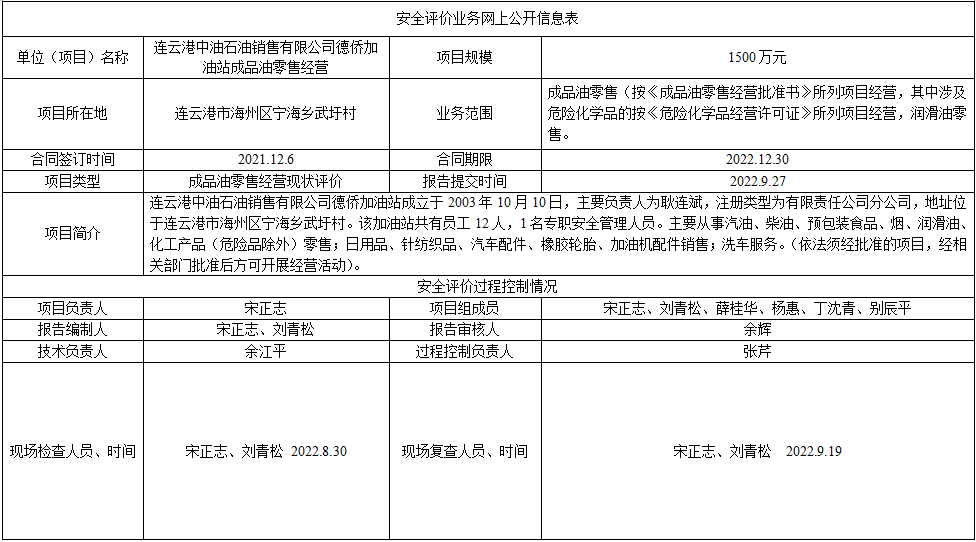 连云港中油石油销售有限公司德侨加油站成品油零售经营