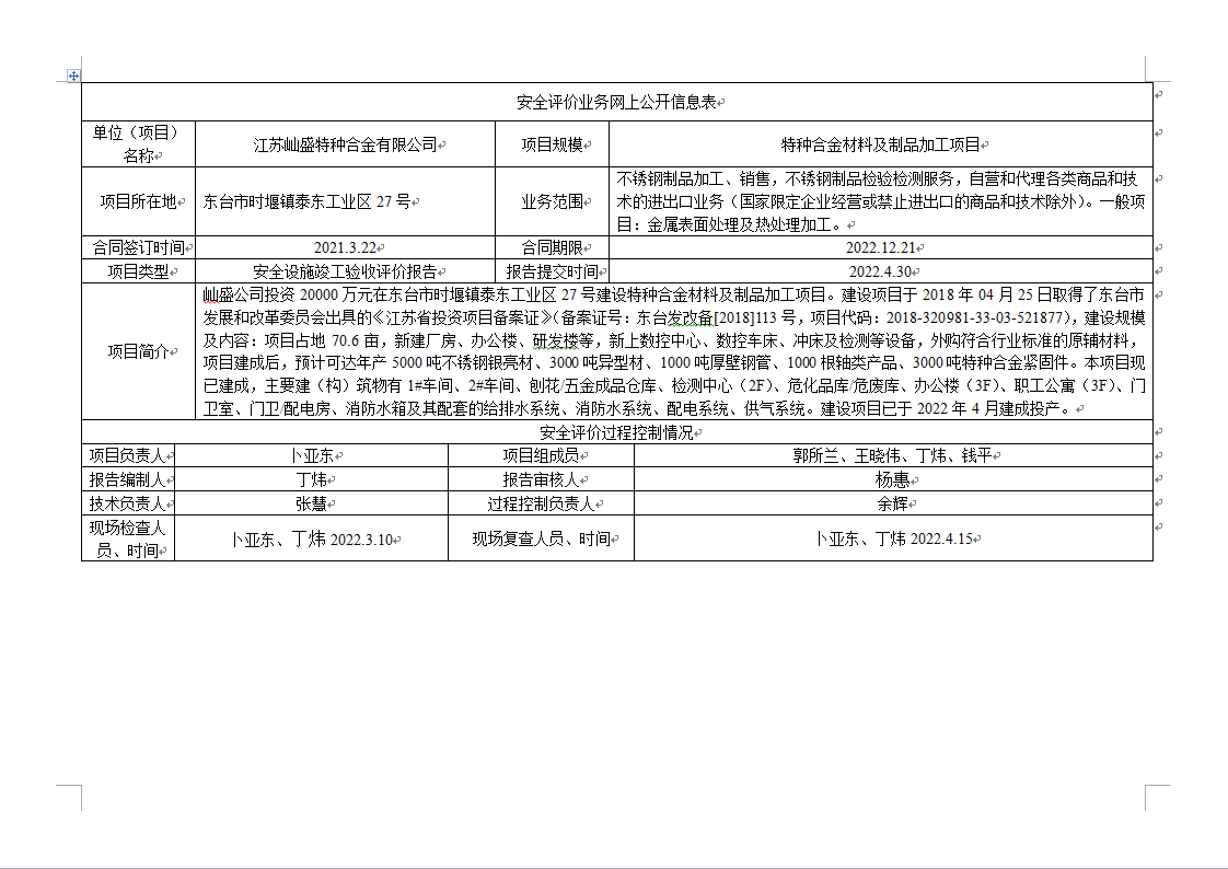 江苏屾盛特种合金有限公司特种合金材料及制品加工项目