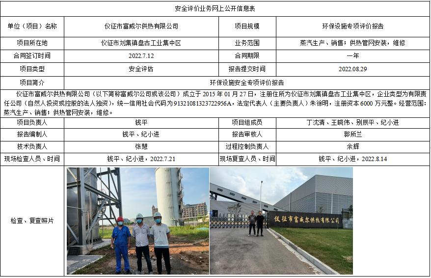 仪征市富威尔供热有限公司环保设施专项评价报告