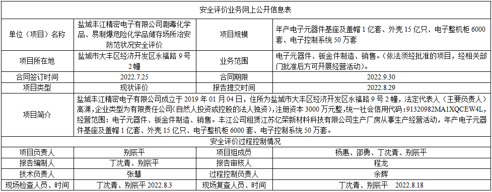 盐城丰江精密电子有限公司剧毒化学品、易制爆危险化学品储存场所治安防范状况安全评价