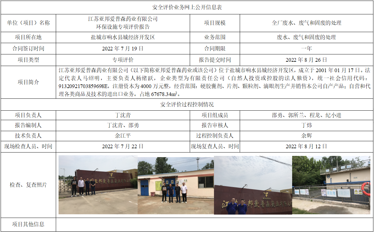 江苏亚邦爱普森药业有限公司环保设施专项评价报告