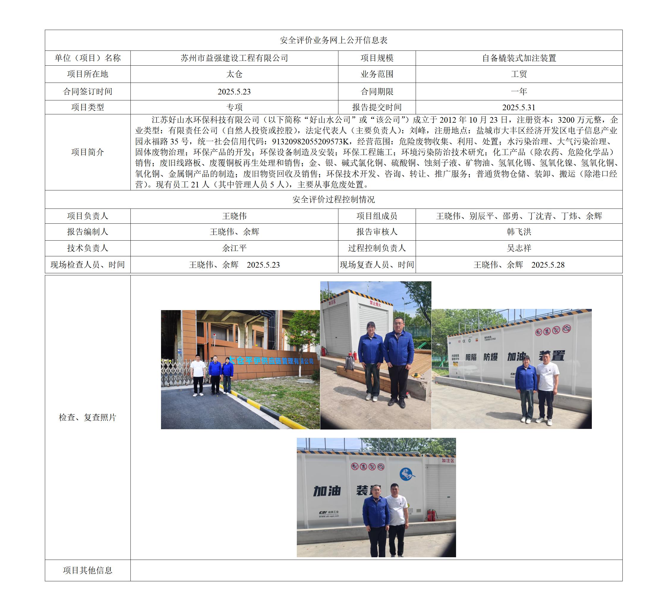 苏州市益强建设工程有限公司自备橇装式加注装置专项安全评价报告
