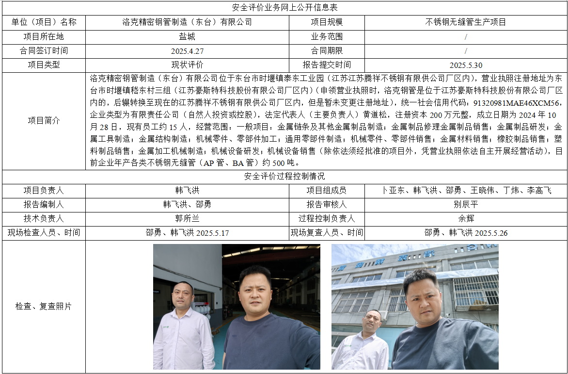 洛克精密钢管制造(东台)有限公司不锈钢无缝管生产项目